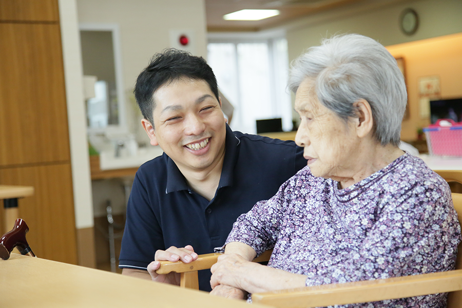 私は「一日一笑」をモットーに、一日一回はご利用者と大笑いできるように、楽しみながら働いています。