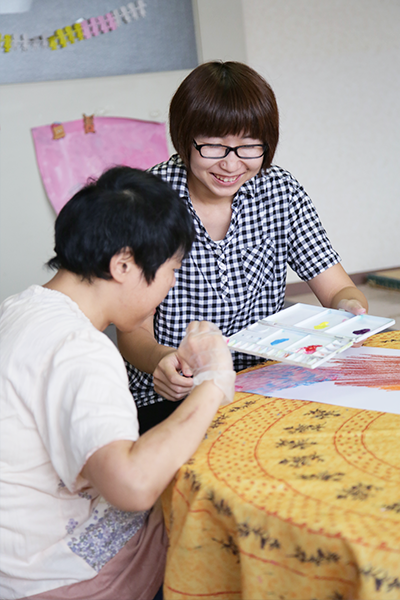 最初は分からない事だらけで、戸惑う事もありましたが、仕事をしていく中でご利用者と会話をしたり、言葉が発せないご利用者とはジェスチャー等を交えて関わっていく事で、少しずつご利用者さんとの信頼関係が築けていけたのではないかと思います。